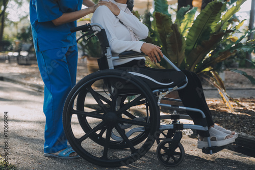 © ARMMY PICCA, Obraz premium nurse with elderly man in wheelchair at park