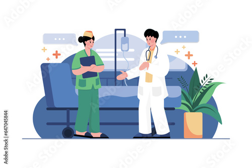 Fototapeta premium Nurses Discuss With A Doctor Illustration Concept