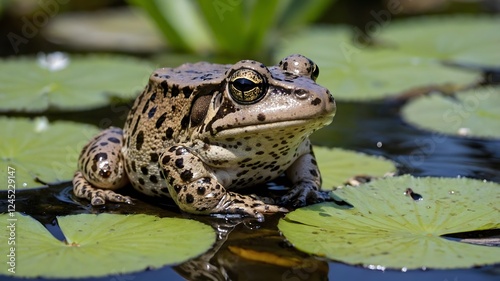 © Chamika, Fototapeta premium Nurturing Care: A Mississippi Gopher Frog and Its Tadpoles by the Water