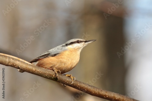 Fototapeta premium Nuthatch - Sitta europaea on a twig in the morning