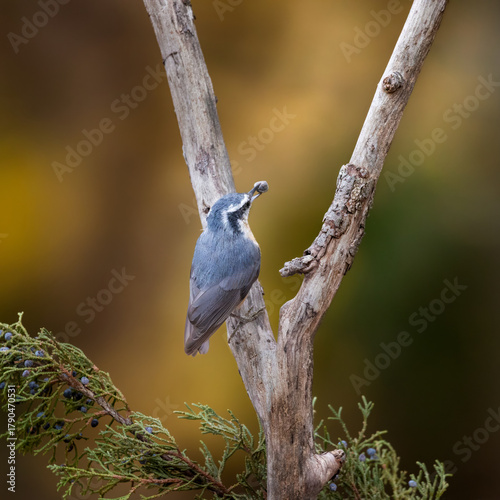 © Hal Moran, Fototapeta premium nuthatch with sunflower seed in beak