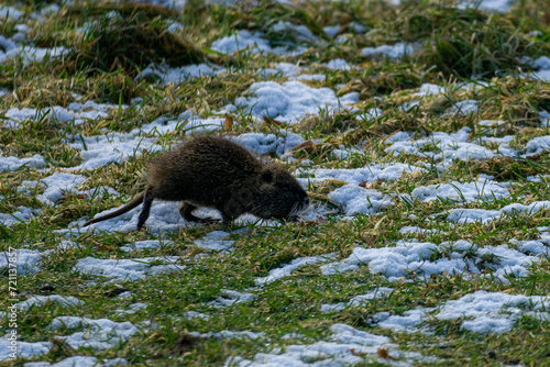 © Nils, Obraz premium Nutria on a snow-covered meadow