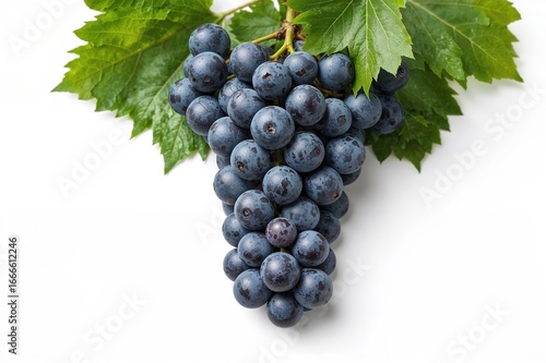 © VRVisionary, Fototapeta premium Nutritious snack featuring blue grapes and fresh green foliage against a white backdrop