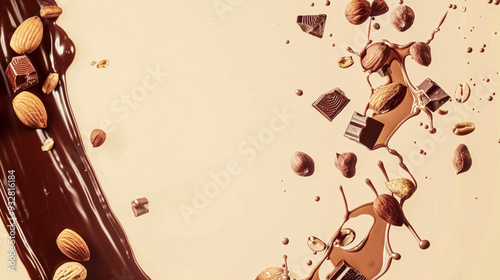 Fototapeta premium Nuts and chocolate splash, food dessert and confectionery industry