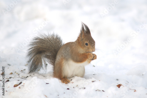 Fototapeta premium Nuts eating squirrel on the snow