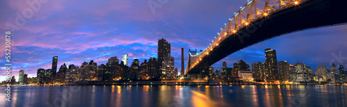 Fototapeta premium NYC Queensboro Bridge and Manhattan skyline panorama at dusk