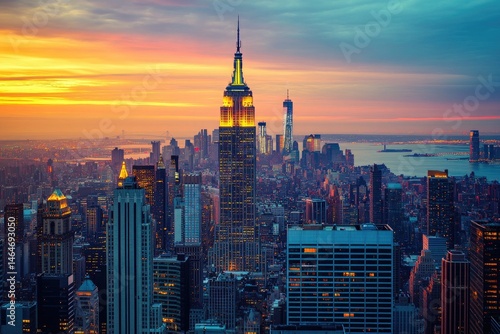 © Pixel Sculptor, Naklejka premium NYC skyline at golden sunrise