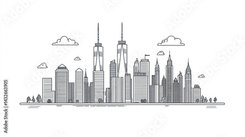 Fototapeta premium NYC Skyline, minimalist line art, city illustration