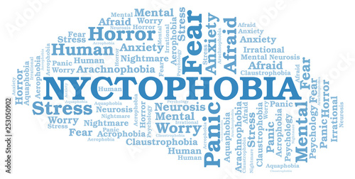© sharafmaksumov, Obraz premium Nyctophobia word cloud.