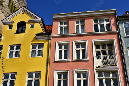 © Nati, Naklejka premium Nyhavn district in Copenhagen, Denmark. City center panoramic view of colorful houses. High quality photo