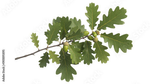 © Fatema, Fototapeta premium Oak branch with green leaves and acorns isolated on a transparent background