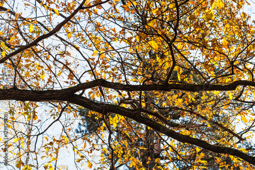 Fototapeta premium oak branch with yellow leaves in urban park
