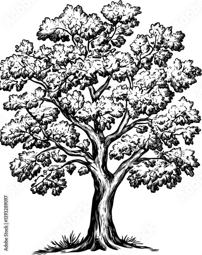 Obraz premium Oak coloring book vector design, Oak vector illustration
