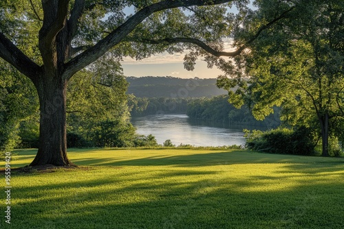 © Serhii, Naklejka premium Oak Ridge Tennessee. Tranquil River View in a Beautiful Morning Park