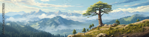 Obraz premium oak tree alone on mountain rock