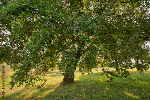 Fototapeta premium Oak tree in the field, natural outdoor background