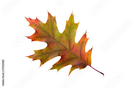© Maxal Tamor, Fototapeta premium Oak tree leaf with autumn colors, isolated on white background
