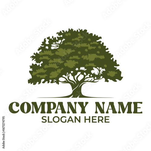 Obraz premium Oak tree logo design illustration. tree vector silhouette template