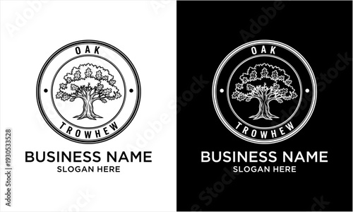 Obraz premium Oak Tree Logo Design with Vintage Circular Frame.