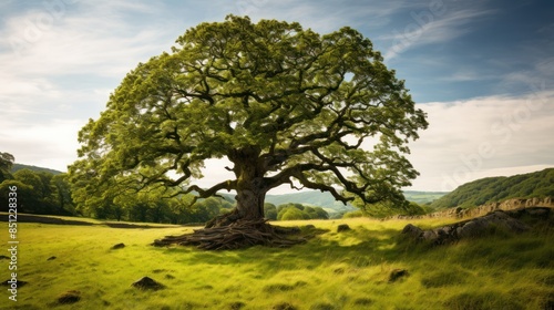 Fototapeta premium oak tree standing sentinel in a verdant meadow,