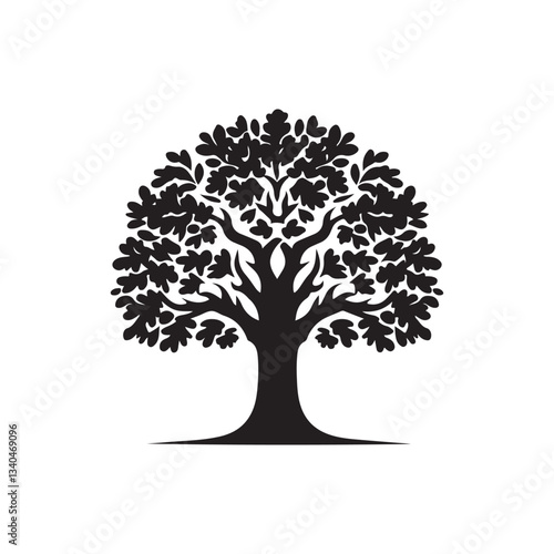 Fototapeta premium oak tree vector silhouette line art logo illustration
