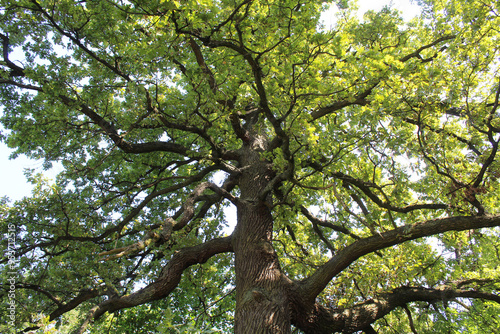 Fototapeta premium oak tree with green leaves in the forest
