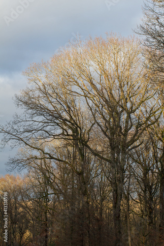 Fototapeta premium oak trees in sunny winter time with dark blue sky