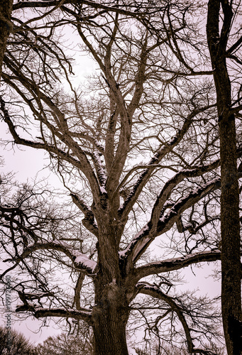 Obraz premium oak trees with snow on