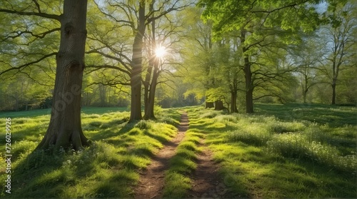 Obraz premium oak woodland, wedding backdrop, photography backdrop, pathway, forest