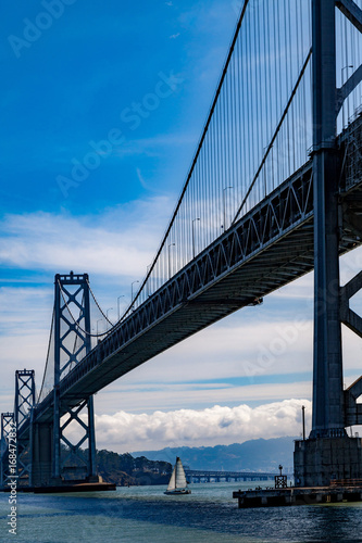 Fototapeta premium Oakland bay bridge with sailing boat underneath