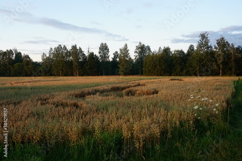 © Art Johnson, Fototapeta premium Oats field at yellow sunset