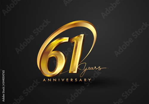 © Vectorideas, Obraz premium Obchody rocznicy 61 lat. Rocznicowe logo z pierścieniem i złotym kolorem elegancji na białym na czarnym tle, projekt wektor do świętowania, zaproszenia i karty z pozdrowieniami.