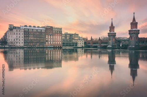 © Berlin85, Naklejka premium Oberbaumbrücke in Berlin Kreuzberg am Abend