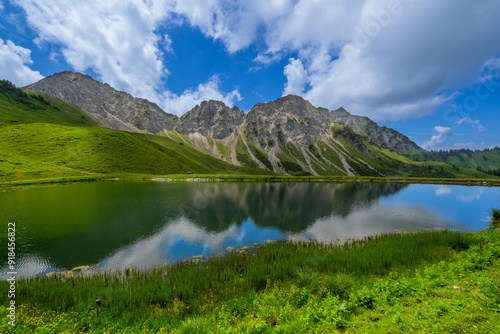 Fototapeta premium Oberpartnom See, Stein in the Gross Walsertal, State of Vorarlberg, Austria