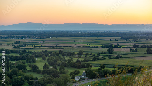 © Dominik Rueß, Naklejka premium Oberrheinebene mit Vogesen im Elsass, vom Tuniberg fotografiert