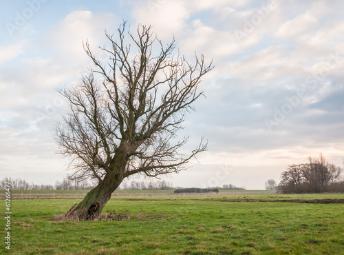 Obraz premium Oblique standing bare tree in the field