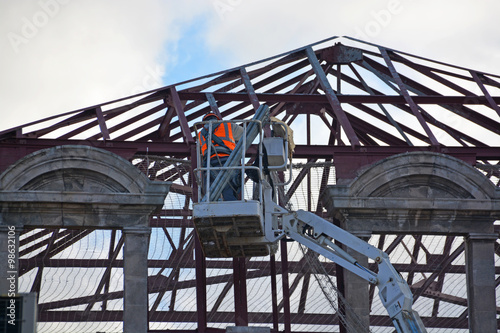 © uzkiland, Fototapeta premium obrero trabajando sobre una grúa
