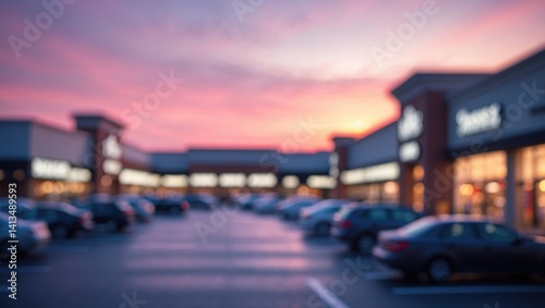 © MetaPixel, Fototapeta premium Obscured exterior perspective of unoccupied parking lots in a modern mall at dusk.