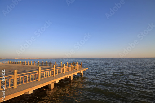 © zhang yongxin, Obraz premium observation platform by the lake under the blue sky