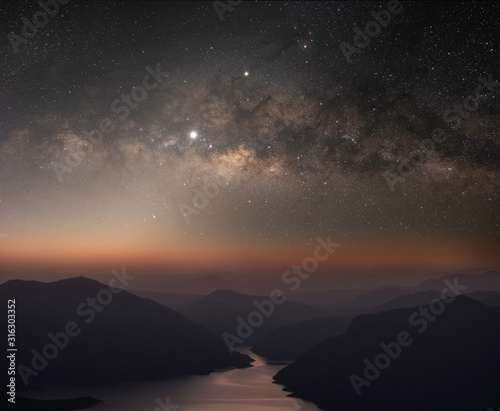 © Anon, Fototapeta premium Observers at night have stars, milky way and galaxies filled the dark sky.