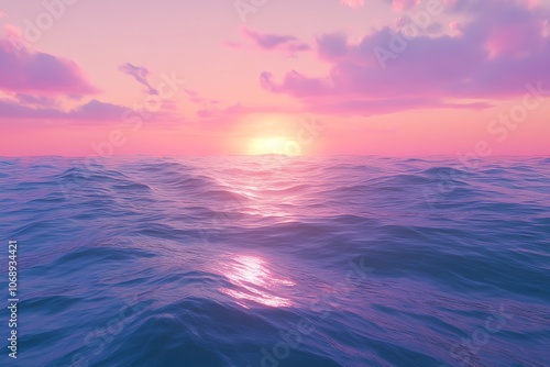 Obraz premium Océan sous un ciel rose de coucher de soleil..