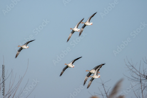 © Katia, Fototapeta premium Oca selvatica, anser anser, in volo.