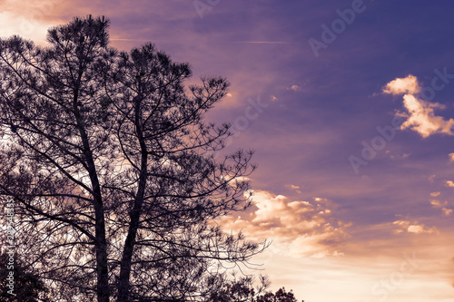 Fototapeta premium Ocaso en el pinar del Concejo en Cadalso de los Vidrios. Madrid. España. Europa.