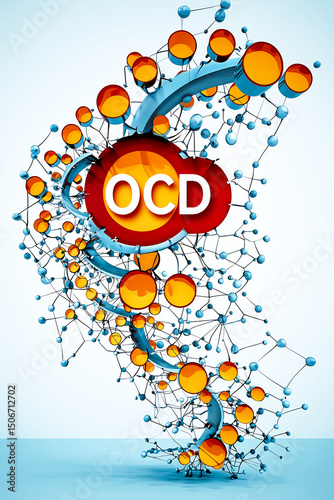 Obraz premium "OCD" text on a stylized 3D molecular network, conceptualizing Obsessive...