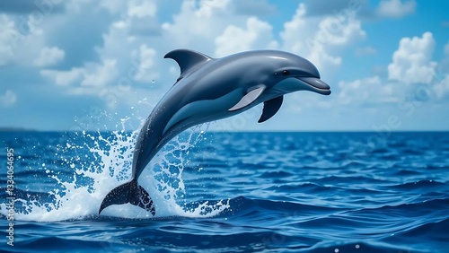 Fototapeta premium Ocean Acrobat: A Dolphin Mid-Leap in a Burst of Water and Energy