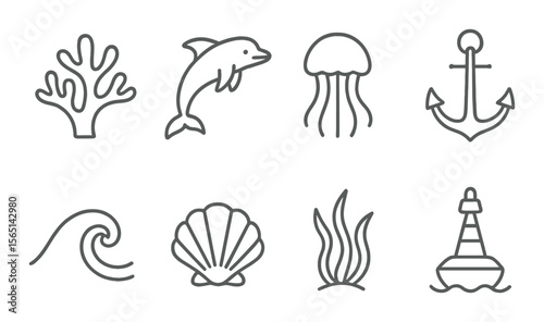 Fototapeta premium Ocean and marine life icons set – outline, sea and aquatic themed graphics