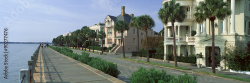 © spiritofamerica, Obraz premium Ocean Atlantycki z zabytkowymi domami w Charleston, Karolina Południowa