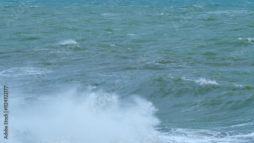 Fototapeta premium Ocean Beautiful Waves. Storm At Sea And Extreme Ocean Waves Breaking Into Sea Splashing Foam. Static.