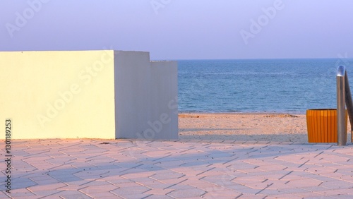 © Sheikhah, Obraz premium Ocean breeze flows through beachfront spaces, travel blending with contemporary coastal design. Oceanfront architecture offers luxurious beachfront retreats for memorable travel moments.