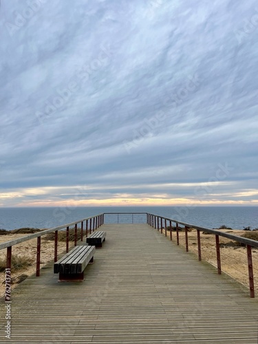 © Oksana, Fototapeta premium Ocean coast, cloudy sky, cloudy weather at the ocean